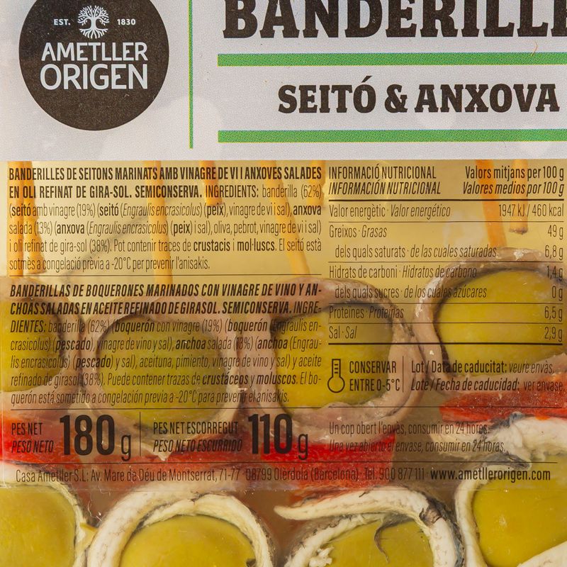 Banderilles d'anxova i seitó Ametller Origen 110g