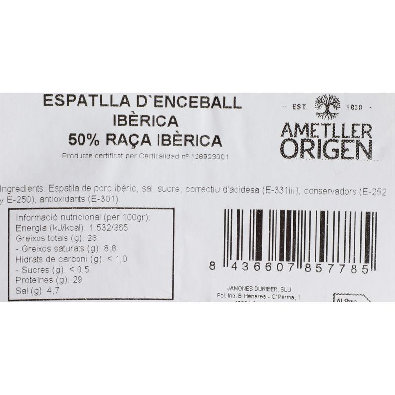 Carn i xarcuteriaXarcuteria al tallEspatlla enceball 50% ibèrica Ametller Origen 90g