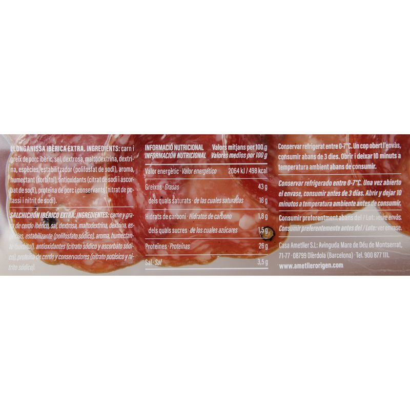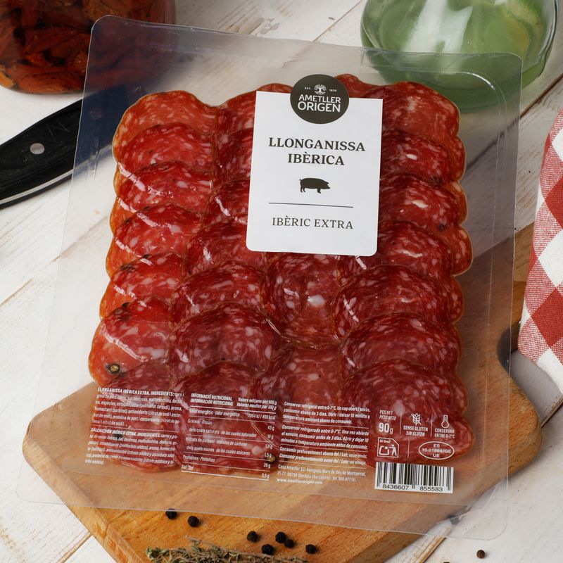 Carn i xarcuteriaXarcuteria envasadaLlonganissa ibèrica extra Ametller Origen 90g