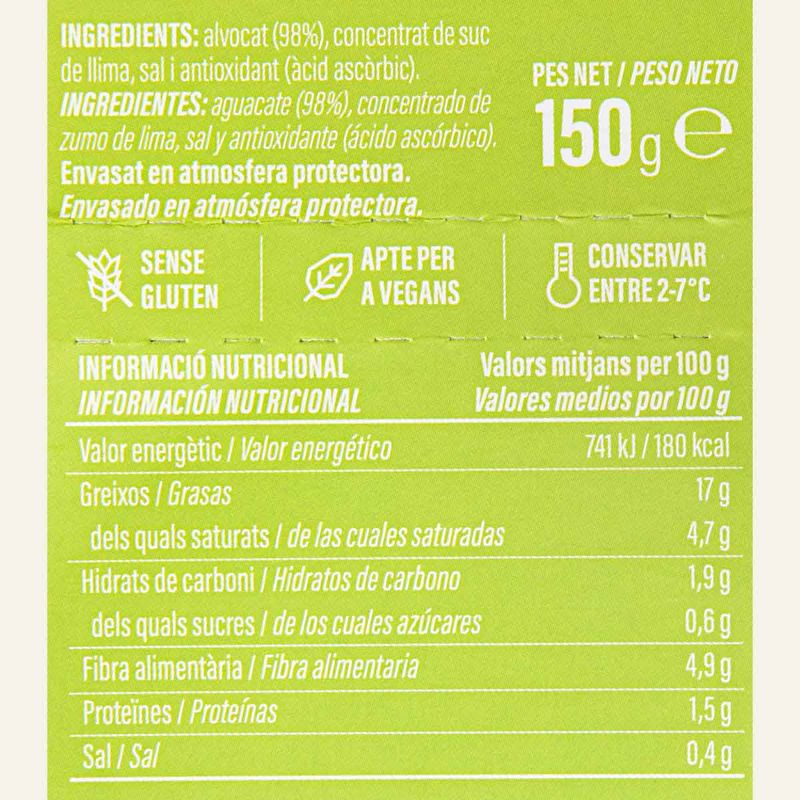 Plats cuinatsPasta fresca i salsesGuacamole i hummusPolpa d'alvocat 98% Ametller Origen 150g
