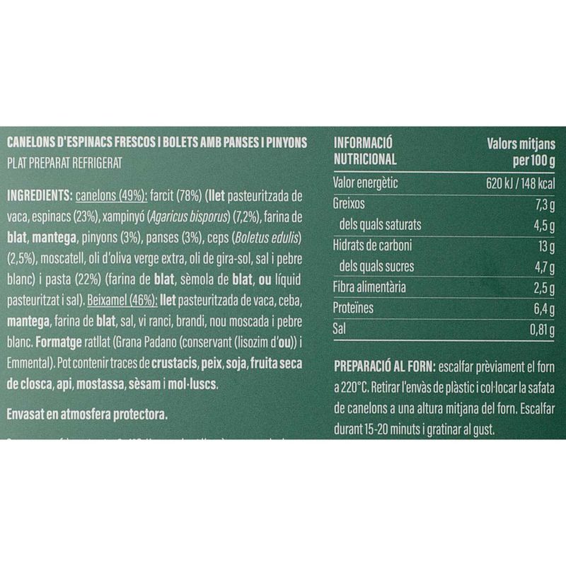 La novetat per aquest any de l?icònic cuiner Nandu Jubany són els seus fantàstics canelons amb espinacs frescos que elabora amb els millors ingredients. Una opció deliciosa per als que no volen menjar carn però tampoc perdre's la tradició i gaudir d?uns canelons perfectes per Nadal.