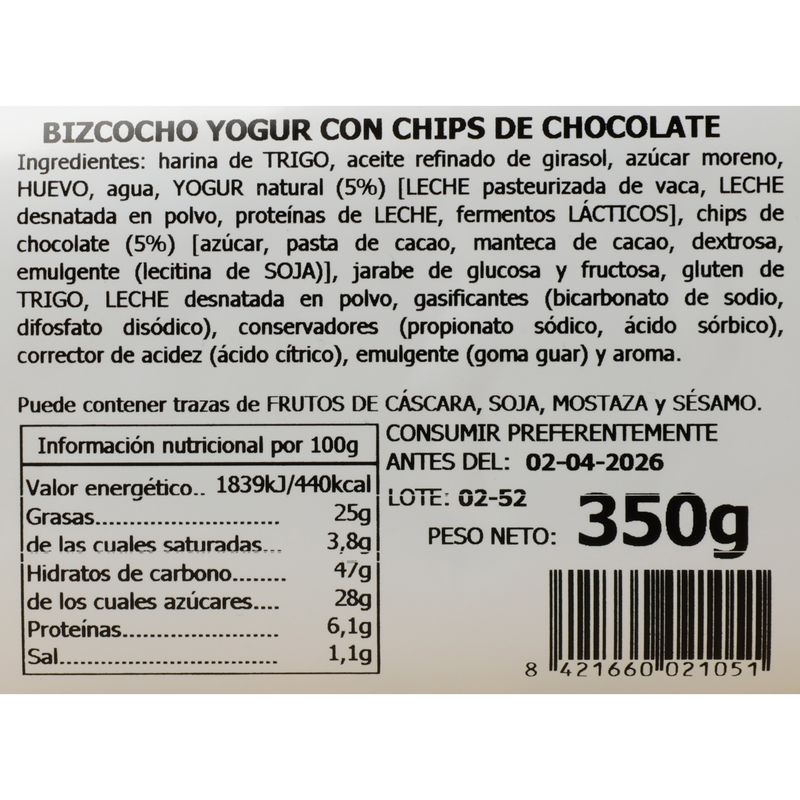 Forn de paBrioixeria i magdalenesBizcocho de yogur La Fageda con chips de chocolate La Granja 350g