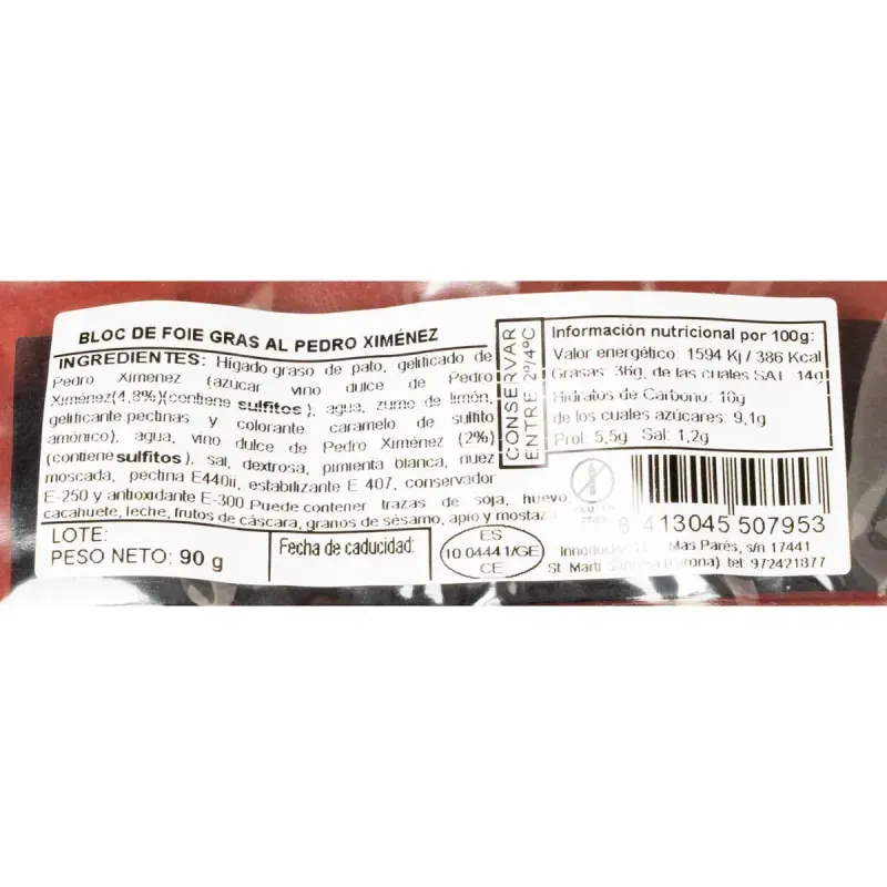 Carn i xarcuteriaXarcuteria envasadaBloque de foie gras de pato con salsa dulce gelificada de Pedro Ximénez. Mas Parés 90 g