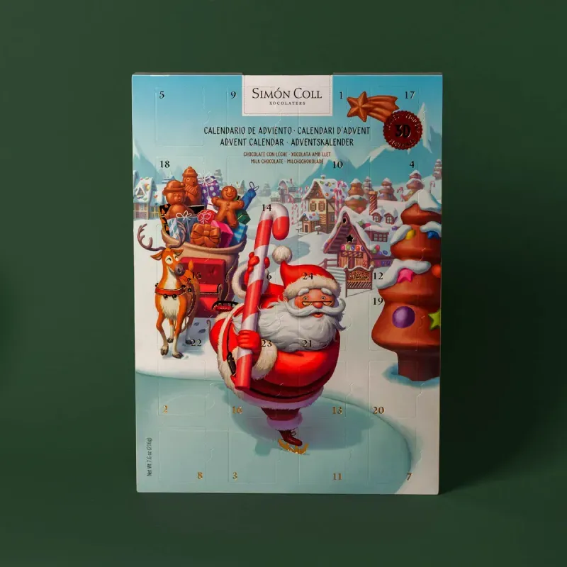 RebostXocolata i bombonsCalendario de adviento de chocolate con leche Papá Noel 3D Simon Coll 216g
