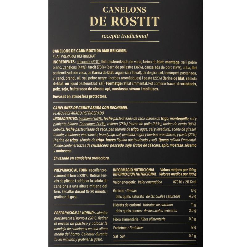 Plats cuinatsCanelons i lasanyaCanelones de asado Ametller Origen 700g