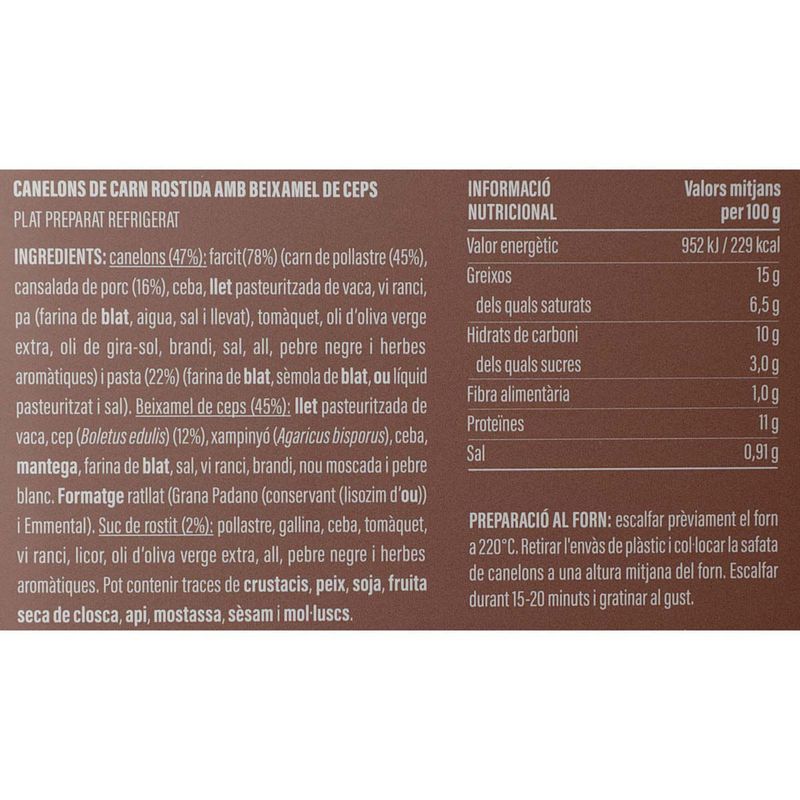 ¿Te imaginas que viniera Nandu Jubany a tu casa a cocinar? Los canelonesde seta calabaza y el jugo de su asado de Nandu Jubany triunfarán allídonde vayan. Solo con olerlos y catarlos sabrás que has acertado. EstasNavidades, en la sección de platos preparados de nuestro supermercadoonline puedes comprar estos canelones de Navidad y olvidarte de pasarhoras cocinando. Si quieres que queden perfectos, caliéntalos al horno yacerca la bandeja al grill durante los últimos minutos para conseguir elgratinado perfecto.Canelons rostit i ceps 3u. Jubany 460g