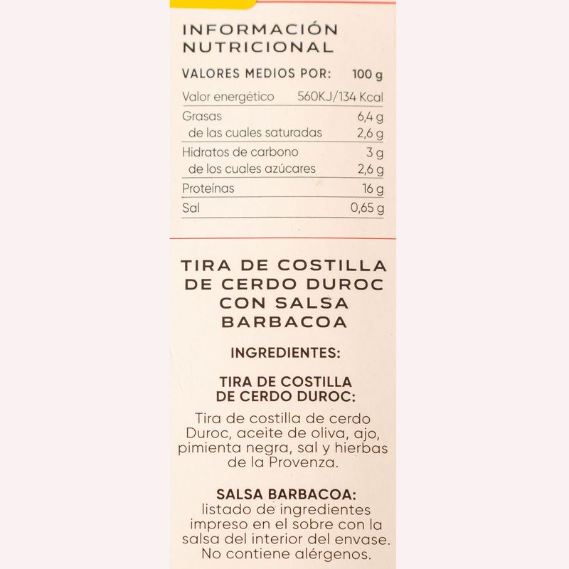 Costilla Ribb con salsa barbacoa Vacook 500g