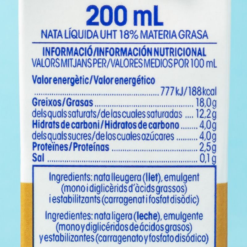 Nata especial para cocinar con solo un 18 % de materia grasa.