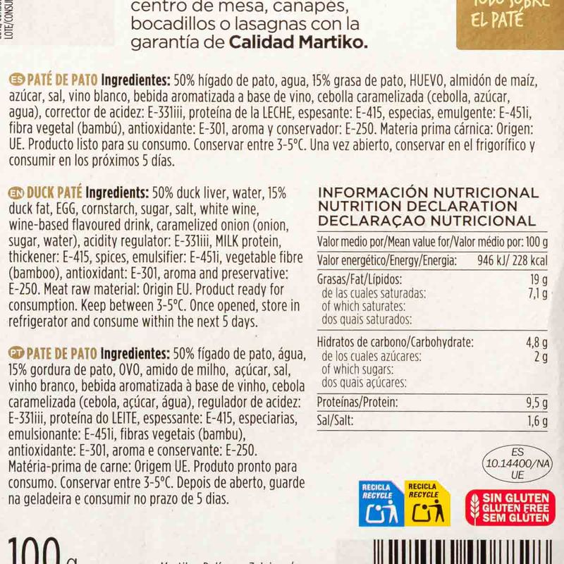 Carn i xarcuteriaXarcuteria envasadaPaté de pato Martiko 75g