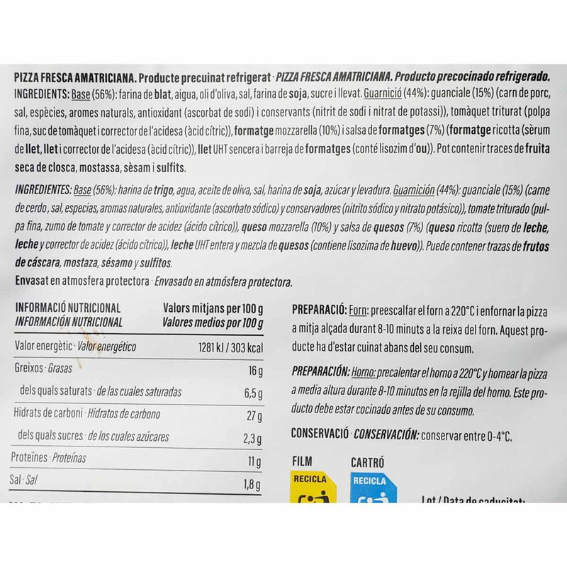 Plats cuinatsPizzes i coquesPizza amatriciana Colombo 450g