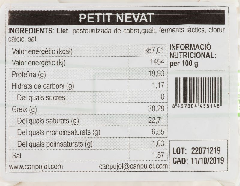 Queso Nevat elaborado con leche de cabra. Tamaño pequeño con una textura suave y untuosa.