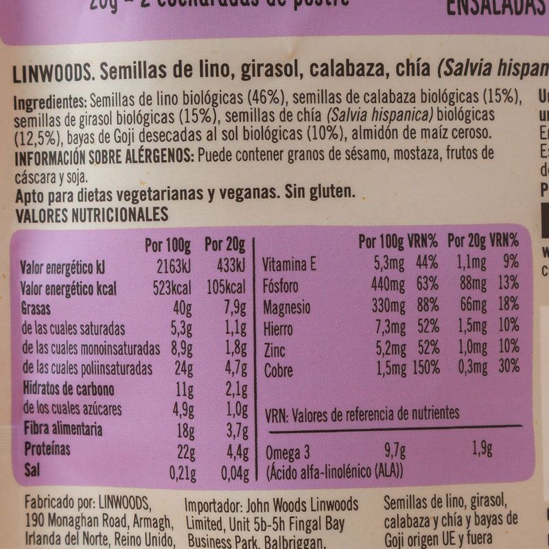 Semillas lino chía bayas Goji Linwoods 200g
