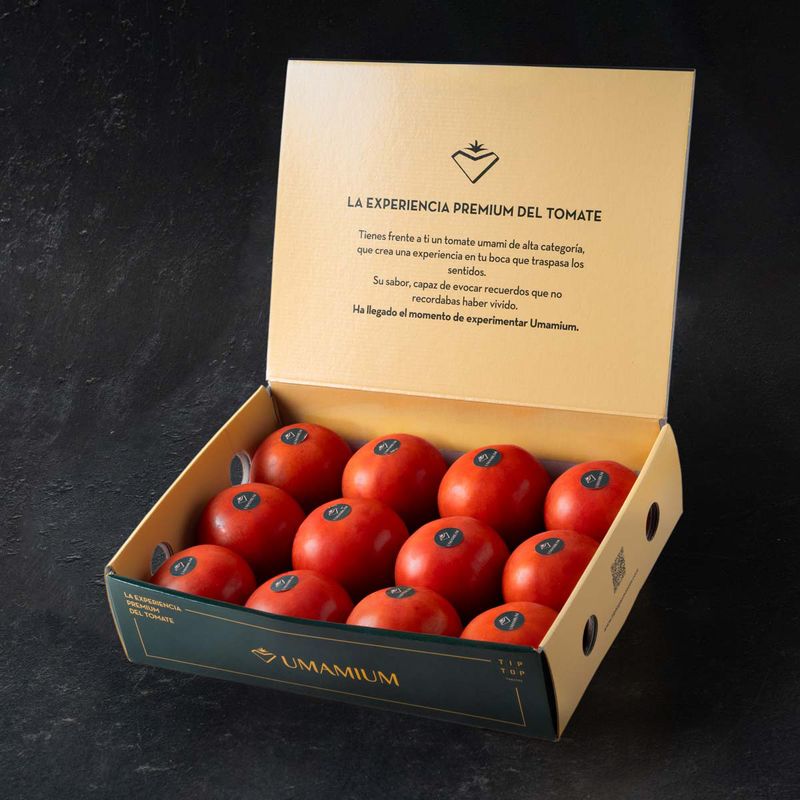 El tomate Umamium que tenemos en la Tienda Online es una variedad detomate exclusiva y de cosecha propia que hasta ahora solo podías probaren restaurantes con estrella Michelin. Su textura es crujiente y susabor, tal y como su nombre indica, es umami (uno de los cinco saboresbásicos). Estamos seguros de que nunca habrás probado un tomate igual…Atrévete a descubrir el sabor a tomate en su máxima expresión.