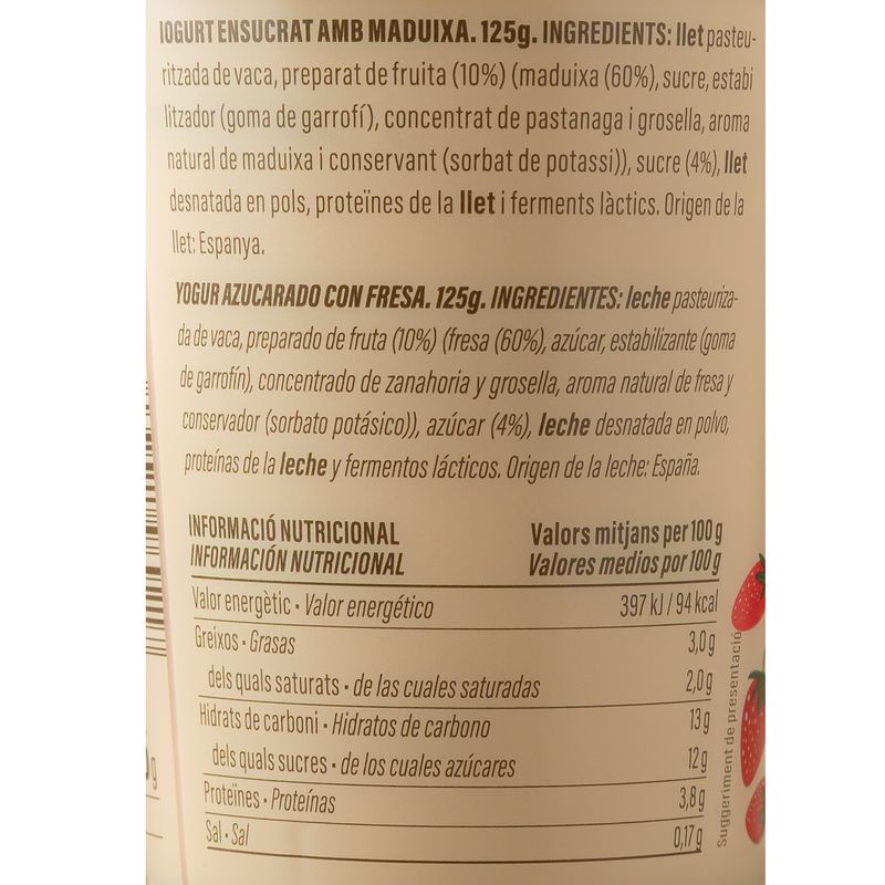 Yogur desnatado con sabor a fresa y textura cremosa y suave.